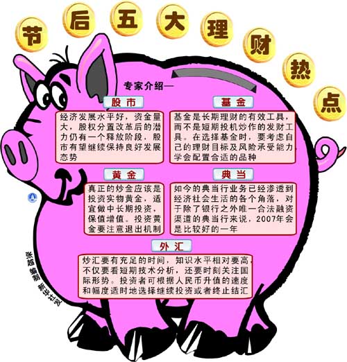 辭舊迎新的時節,基金公司忙著分紅,保險公司急著推出新產品,銀行的人民幣理財產品更是拉開陣勢搞促銷。剛剛享受過2006年紅紅火火的理財經歷,使得人們在走親訪友、恭賀農歷新年之余,也大都開始悄悄地為自己謀劃新年的“發財計劃”。