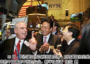 擁有上百年歷史的中國中藥企業——同濟堂藥業有限公司的股票16日正式在紐約證券交易所掛牌交易,這是我國首家在紐約股市上市的中藥企業,也是今年以來在紐交所登陸的首家中國企業。 同濟堂這次共發行美國存托股份986.5萬股(每股存托股份等于4股普通股),募集資金近1億美元,其上市主承銷商是美林證券和瑞士銀行。 同濟堂藥業有限公司的前身是在國內中藥行業聞名遐邇的老字號貴陽同濟堂,該企業創辦于1888年,距今已有逾百年的歷史,F今的同濟堂已發展為集科研、生產、銷售、種植為一體的現代制藥企業,生產中、西藥品種近50種,擁有發明專利、自主知識產權的產品8種。 同濟堂藥業董事長兼首席執行官王曉春說,同濟堂成功在美上市是中國傳統中醫中藥與現代資本市場的完美結合,它有利于提高企業知名度,把中醫中藥帶給美國以至全球的投資和消費者。 紐交所總裁兼聯合首席運營官凱瑟琳·金尼在接受本報記者采訪時說,中國中藥企業在紐交所上市具有重要意義。目前已有不少優秀的中國企業在紐交所上市,受到了投資者的歡迎,她期望更多的中國企業來美融資上市。 目前,在紐交所上市的中國企業已達21家,中國已成為亞洲在紐交所上市企業數量最多的國家。