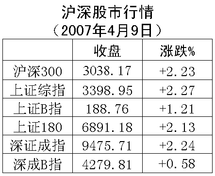 承接前一交易周的上揚勢頭,滬深股市9日強勢拉升,雙雙實現“六連陽”。上證綜指向3400點整數關口發起沖擊雖功虧一簣,但仍和深證成指一起以3399.51點和9509.60點創下了歷史新高。