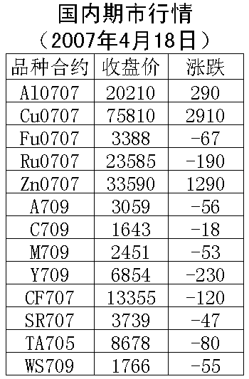 18日國內期貨市場金屬上漲,能源、農產品價格下跌。倫敦銅周二上漲315美元/噸,收盤8085美元/噸。滬銅707合約周三上漲2910元/噸,收盤75810元/噸達到漲停板,明日漲跌幅度擴大到5%,支撐價位73000元一線,上漲壓力80000元一線。倫敦鋁周二上漲52美元/噸,收盤2885美元/噸。滬鋁707合約周三上漲290元/噸,收盤20210元/噸,支撐價位20000元一線,上漲壓力20400元一線。
