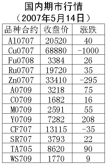 14日國內期貨市場金屬價格呈銅跌鋁漲,能源、農產品價格上漲。倫敦銅上周五上漲65美元/噸,收盤7895美元/噸。滬銅707合約周一下跌10000元/噸,收盤68880元/噸,支撐價位68000元一線,上漲壓力70000元一線。倫敦鋁上周五上漲50美元/噸,收盤2877.5美元/噸。滬鋁707合約周一上漲40元/噸,收盤20520元/噸,支撐價位20000元一線,上漲壓力21000元一線。