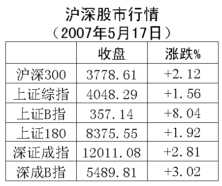 承接前一交易日的強勁反彈走勢,滬深股市17日繼續震蕩走高,上證綜指重返4000點整數關口上方,深證成指則創出了歷史新高。