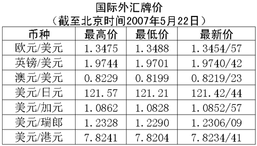 當天紐約匯市尾市時,歐元對美元比價從前一個交易日的1比1.3505降至1比1.3467,英鎊對美元比價從1比1.9745降至1比1.9702,美元對日元比價從1比121.15升至1比121.46,美元對瑞士法郎比價從1比1.2276升至1比1.2301。