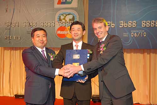 最近,華夏銀行消息面看點較多。一是華夏銀行高層變動。日前,華夏銀行公告稱,董事會已通過決議,同意劉海燕董事長的辭職,并通過選舉黨委書記翟鴻祥為董事候選人。有預測認為,如無意外,翟鴻祥將成為下一任董事長人選,F年61歲的翟鴻祥于今年5月底辭去了北京市常務副市長的職務,十分熟悉金融業。 二是華夏銀行與德意志銀行的合作成果顯著。德意志銀行所持股份占總股本的7.02%,其旗下子公司德意志銀行盧森堡股份有限公司持有總股本2.88%的股份,薩爾奧彭海姆股份有限合伙企業將持有4.08%的股份。目前華夏銀行與德意志銀行的合作正在有序推進,雙方在貿易融資、外幣清算、基金代銷、人員培訓等方面的合作已取得初步成果。 圖為華夏銀行副行長李國鵬、德意志銀行私人和工商金融企業金融服務部亞太區總裁謝鵬德向華夏銀行信用卡中心首席執行官侯平授卡,標志著華夏銀行信用卡業務正式啟動。 |