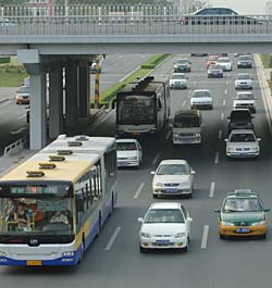 | 北京西三環上川流不息的汽車。據北京市交通委介紹,北京市機動車已突破300萬輛。新華社記者 陳樹根