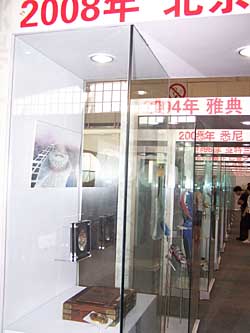 | 北京2008年奧運會紀念銀盤及包裝在巡展現場。本報資料照片 | 本報訊