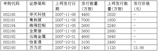 本周將有三個新股發行,他們全都選擇在中小板上市。 萬利達于10月29日網上申購。該公司擬發行1400萬股,主營業務是繼電保護和電力綜合自動化研發、生產、銷售。公司的毛利率較高,超過50%,但是市場占有率與優勢企業相比有一定差距。 云海金屬于10月31日網上申購。該公司擬發行4800萬股,主營業務是鎂合金的,同時生產鍶和鋁合金。該公司是鎂合金產銷量的龍頭,同時也是全球規模最大的鎂合金專業生產企業。我國的鎂儲量豐富,排名世界第一,而且成本較低,所以現在全球的鎂合金制造基地向中國轉移。公司總體質地不錯,成長迅速,問題是產品價格較低,容易造成反傾銷訴訟,同時產品毛利也不高。 怡亞通將于10月31日網上申購。該公司擬發行3100萬股。這是一家管理創新的公司,主要從事的是將生產企業除生產以外的供應量統統包下來的業務,所謂生產歸廠商,供銷歸這家公司,這種模式在國內剛剛興起,它的年均復合增長率為40%,毛利率超過60%。 本周,證監會還將審核兩家公司的首發申請和兩家公司的增發申請。10月31日,發審委將召開第157次發審會,審核云南綠大地生物科技股份有限公司和浙江東晶電子股份有限公司的首發申請。據預先披露的首發招股說明書(申報稿)顯示,綠大地生物本次將發行2100萬股,占發行后總股本的25.02%。本次發行募集資金將主要用于特色綠化苗木生產基地建設等項目。東晶電子本次將發行1600萬股,占發行后總股本的25.81%。本次發行募集資金將主要用于新型高精度SMD石英晶體元器件技改等項目。當日,發審委還將召開第158次發審會,審核金融街控股股份有限公司和浙江棟梁新材料股份有限公司的增發申請。 上周,“亞洲最盈利企業”中國石油回歸A股。上周五是中石油網上申購日,同時也是網下申購的截止日。據悉,中石油網上、網下凍結資金均創下新高,不僅刷新了中國神華剛剛締造的紀錄,且成就了中國股市新股發行史上的凍結資金最大單。有關渠道的數據顯示,中國石油此次網上、網下凍結資金總計約3.3萬億,一舉超過中國神華2.67萬億的凍結資金量,創下中國股市IPO凍結資金的新高。