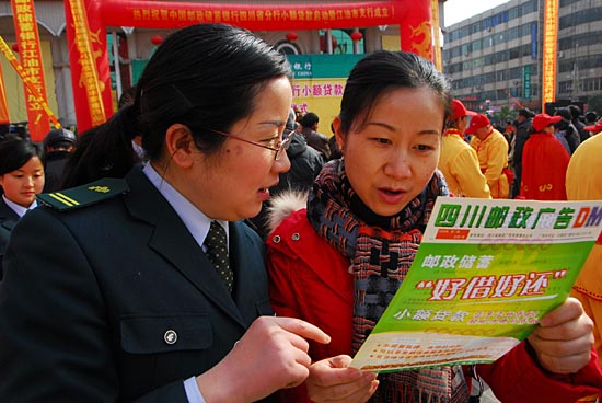當日,中國郵政儲蓄銀行四川省分行正式啟動小額貸款業務試點。這是繼郵政儲蓄存單質押貸款之后,中國郵政儲蓄為廣大小企業主和農戶開辟的一個新的貸款渠道,有望2008年在四川全省推廣。