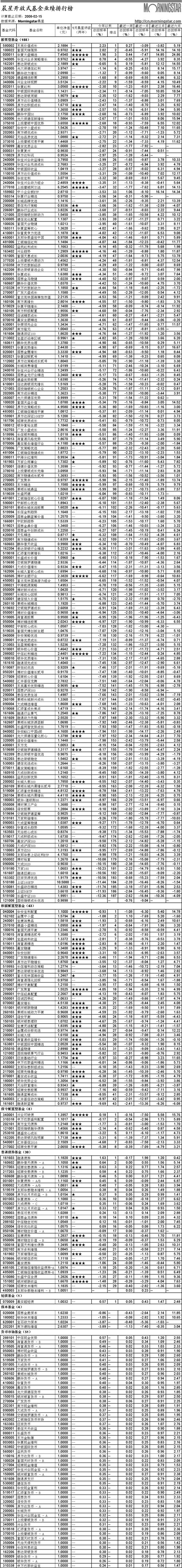 晨星開放式基金業績排行榜[2008-2-15]