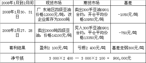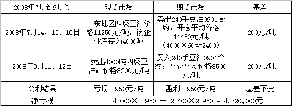讓我們來分析發生在2008年的四個不同的套期保值實戰案例。 在保值虧損的案例一中,雖然廣東那家保值企業完全遵守了傳統的套期保值原則,但因為企業對大勢判斷失誤,在現貨價格相對于目標保值期貨價格已經產生較大價差的情況下,依舊采用1:1的保值方案,結果造成沒有對所有現貨進行有效保護。 案例二中的天津某企業則表現出對大勢把握比較準確的操作思路。當時,油脂價格處于上升勢頭中,現貨銷售比較容易,該天津油脂企業在期市上建立了小于現貨庫存數量的空頭頭寸數量。由于沒有建立完全數量的保值,企業在期市的虧損小于現貨市場上的盈利,從最終的保值效果看,企業實現了盈利。 在案例三中,山東某企業雖然對大勢把握準確,已經認定了熊市的到來,但因為他們僅對60%的庫存數進行了期市上的空頭保值,再加上當時處在價格加速下行時期,現貨銷售比較困難,使得另外40%的庫存處于敞口風險當中,期市上的空頭頭寸只給企業規避了部分庫存風險,最終企業出現了不應有的虧損。 在避險成功的案例四中,河北的這家企業不僅看準了走熊的大勢,而且在期市上建立了大于現貨庫存的空頭頭寸,企業在當時市價銷售庫存較為困難的情況下,為了能在兩個市場同時進行交易了結,以低于市價將庫存逐步消化,結局比較完美,除去兩市盈虧相抵的部分,企業在期市上建立的超額部分保值頭寸給他們帶來了超額收益。