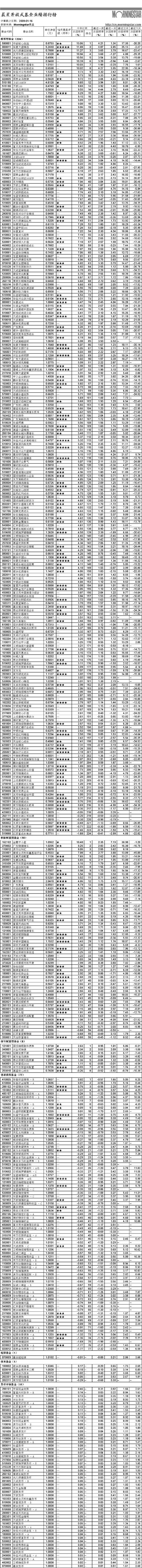 晨星開放式基金業績排行榜[2009-01-19]