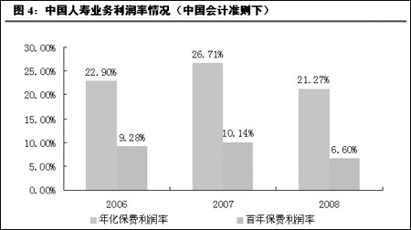 中信建投證券研究發展部金融服務業分析師魏濤分析說,2008年中國人壽取得了高達50.34%的壽險保費增長率,但標準保費利潤率由26.7%下降為21%,而首年保費利潤率則由10%下降為6.6%。從香港準則下保費數據來看,期繳占比很低的總投資型合同收入增長率為101%,遠高于總保費收入增速23.1%。 他認為,這是公司在競爭情勢下,對規模和效益作出抉擇后的戰略選擇。 中國人壽保險股份有限公司總裁萬峰在3月26日的業績發布會上強調,中國人壽今年要進一步調整業務結構,加大長期期交型、保障型產品發展力度,實行“轉型增效”。從今年一季度情況看,轉型效果非常明顯,5年以上、10年以上期交業務增長強勁。