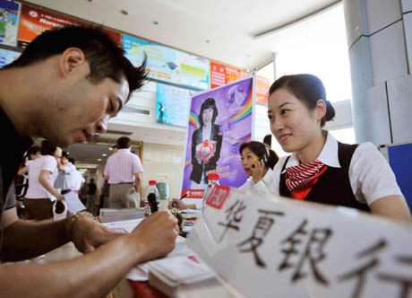 5月10日,銀行工作人員在創業項目交流大會上為投資人解答資金擔保相關問題。