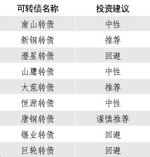 近期可轉債價格隨股市大幅上漲,可轉債價格對理論價值的大幅折價已不復存在,部分可轉債的價格已經有所高估,投資者應注意風險。隨著偏股型轉債的陸續贖回,可轉債市場的股性有所減弱,F存的9只產品中,新鋼、唐鋼與澄星轉債為偏債型,大荒、恒源與南山轉債為偏股型,山鷹、錫業與巨輪轉債為平衡型。轉債市場平均轉股溢價率為43.21%,平均純債溢價率為36.50%。所有可轉債的到期收益率都已為負。推薦具有長期投資價值的新鋼與大荒轉債,關注唐鋼轉債的交易性機會。