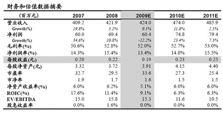 安信證券傳媒、旅游行業研究員蘇慧表示,我們堅持2008年報點評中對公司的評價,維持2009年~2011年EPS分別為0.19元、0.23元及0.25元的盈利預測,鑒于市場估值水平較前次報告有大幅抬升,故上調公司目標價至6.46元,維持“中性_A”的投資評級。 |
