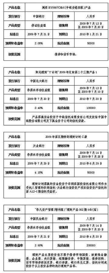 在售人民幣理財產品