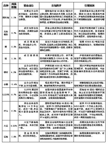 期貨市場主力品種周評(07/03-07/09)