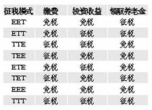 EET是指在企業年金支付時征稅,而對年金的繳費和年金投資所形成的收益免稅。在主要的西方發達國家里,選擇EET模式的有英國、比利時、德國、美國、加拿大等國,選擇ETT模式的有丹麥、意大利、瑞典和澳大利亞,選擇TEE或者TTE模式的是盧森堡、新西蘭。