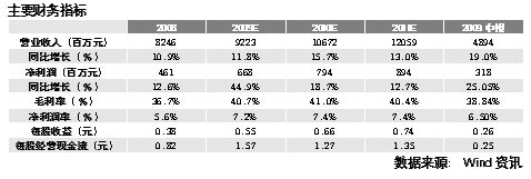 2009年上半年公司對去年高價進口庫存大麥的消化,加上上半年啤酒價格同比上漲(漲幅為4.44%),使得公司全年毛利率有望繼續提升。民族證券研究報告認為,奧運補償效應以及啤酒行業的發展慣性,有可能使得公司下半年產量增速也進一步提升。如果母公司及其控股子公司均通過高新技術企業認定,那么可以增厚每股收益約0.08元。此外,研究報告也指出了投資存在的一定風險因素,公司上半年管理費用率7.73%,同比上升了0.46個百分點。