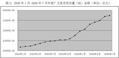 圖2:2008年1月-2009年7月中國廣義貨幣供應量(M2)余額(單位:億元)