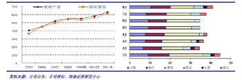 在蘭花科創長期的產業布局中,除了無煙煤、化肥和煤炭行業的業績增長也值得期待,資源整合所帶來的產能增長同樣被看好。玉溪煤礦2008年10月31日獲得國家發改委核準,11月開工建設,預計項目建設期為3年,該礦設計能力240萬噸/年,是公司煤炭產能的增長點。公司自2008年8月份先后整合了山陰口前煤業、中立煤業、瑞興煤業等煤礦,其中山陰礦未來有建設成300萬噸礦井的可能。參股的山西亞美大寧能源有限公司本已經達產達效。