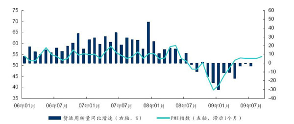2006年1月-2009年8月中國PMI指數與航空貨