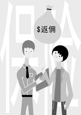 “剛為一個客戶做完計劃,年繳213000元,客戶要我優惠30000元,要不然就從別人那里買保單了!北kU代理人趙剛正在為一筆業務煩惱,擺在他面前的有兩條路:給,簽下單子,然后完成業績考核,可以達成公司所有旅游獎勵,但是收入就沒有了;不給,保單無法簽成,業績完不成,考核估計也會降級。趙剛最后沒有選擇給客戶“返傭”,結果被公司考核降級。
