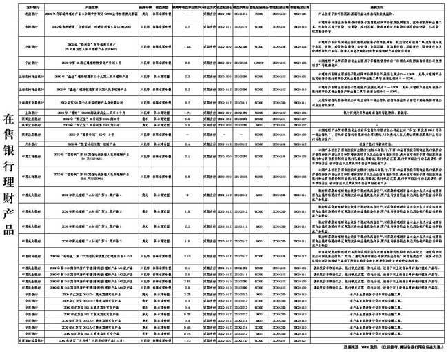 在售銀行理財產品【圖表】