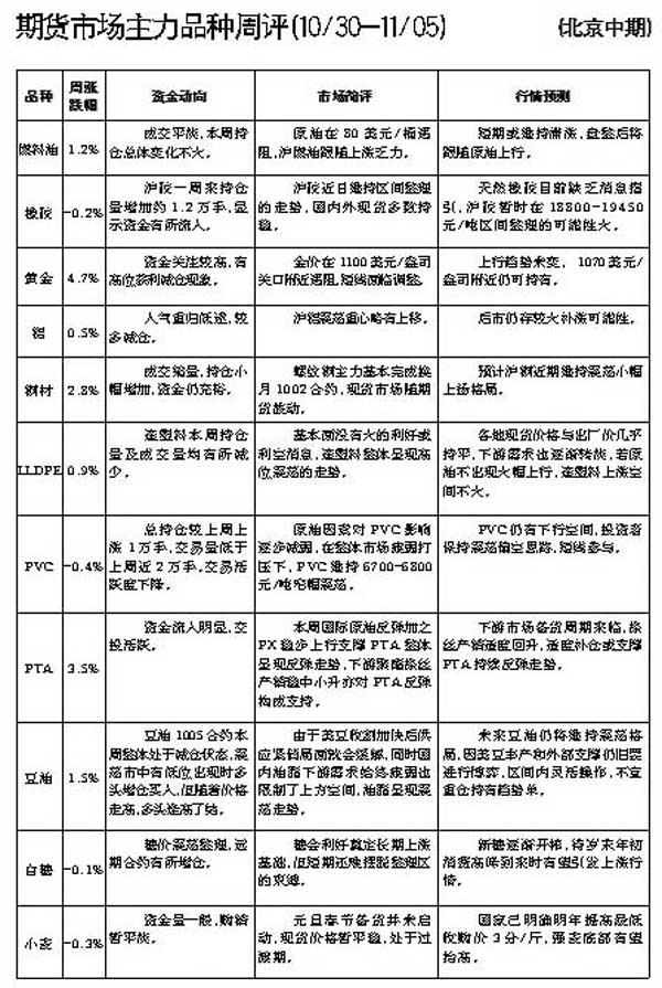 期貨市場主力品種周評[10.30—11.05]