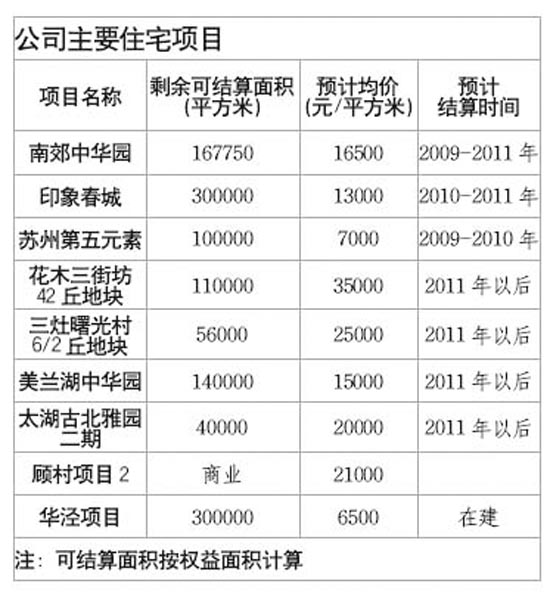 公司今明兩年的盈利主要來自于南郊中華園項目、印象春城項目和蘇州第五元素等住宅項目,以及華寧國際廣場、萬泰大廈、上海國際客運中心等商業項目。2011年之后,花木的高檔裝修公寓、三灶的獨棟別墅以及美蘭湖中華園等盈利能力較強的項目將進入結算,公司業績也有較大保障。 南匯并入浦東、迪斯尼落戶上海等事件性因素在推動周邊房價上漲的同時提高了公司相關房產項目的毛利率;長江隧橋通車目前對公司并無實質影響;集團資產重組取決于集團層面,公司鞭長莫及。
