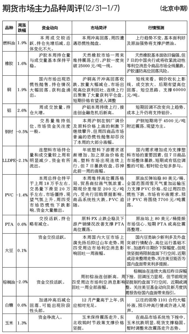 期貨市場主力品種周評[09.12-31-10.01.07]