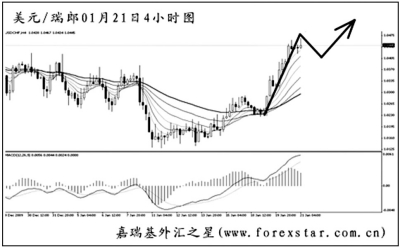 ▲美元兌日元從93.80一線展開下跌,但下跌并不順暢,中間伴隨著力度較強的反彈走勢,預示跌幅比較有限。短線美元兌日元在小時圖MACD持續底背離的作用下發生反彈,預計后市重新挑戰前高的概率較大?蛇m當尋找低位買入的機會。