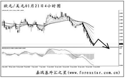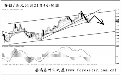 ▲歐元兌美元短線加速下行,下跌力度迅猛。匯價下方的強支撐在去年6月中旬的低點1.3745,此位置為此波歐元下跌的“終極”目標。圖中均線系統空頭排列,主客觀方向均下看。歐元有向上回抽1.4215一線的風險,但看空的思路不變。