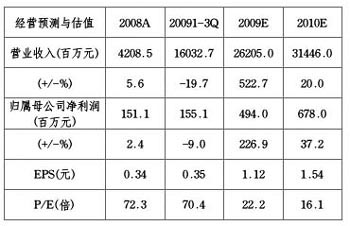 0.57元,2010年業績仍可穩步增長15%-20%。以2009年20倍PE計算,業務價值11.4元/股。另外,公司正積極探索汽車銷售新業態,同時拓展汽車產業鏈下端的新業務,包括二手車交易和汽車租賃。 “精品作品”的開發策略將持續提升公司房地產業務的品牌形象,長期看有機會使公司開發的住宅享受到品牌所帶來的溢價,再加上低成本擴張優勢,公司地產業務有望維持穩步增長的態勢。預計地產業務未來三年貢獻的EPS分別為0.45元、0.67元和0.88元。取PE估值和NAV估值兩者平均,得出地產業務的合理價值應為14.7元/股。 中大期貨經營規模在2007年已排名至行業第4,并連續7年進入全國10強。2009、2010年凈利潤預計可達到0.54億元、0.95億元?紤]到未來3年國內期貨成交金額維持30%以上的增長幾無懸念,我們認為,給予中大期貨2010年30倍PE屬于合理范圍,對應上市公司每股價值約6.2元。