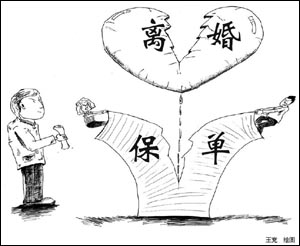 評析:根據《中華人民共和國婚姻法》第17條規定,夫妻在婚姻關系存續期間所得的財產歸夫妻共同所有,夫妻對共同所有的財產,有平等的處理權。 離婚時候分割保單,其實主要是分割保單的現金價值,在繳納多年的保險金后,養老保險保單的價值=保險金+保險公司返還的投資收益,所以分割保單相當于分割保單的現金價值。 如果繳納保險的保費是夫妻共同財產里面支出的,那么離婚時候可以分割該財產,分割方式有兩種: 一、退保后分割現金。 缺點:退保時候,保險公司會扣除一部分費用,特別是對于投保時間比較短的保險,退保得到的現金還未必有繳納的保費多,對于夫妻雙方都是個損失。 二、變更投保人,轉讓保單給被保險人。 如果夫妻一方愿意繼續保留自己的人壽保險,可采用這種方法。 根據《保險法》的規定,投保人必須和被保險人之間有保險利益,由于夫妻離婚后身份關系的消失,使得保險利益不存在,夫妻離婚后不能再為對方投保,雙方可以到保險公司變更投保人,把保險單轉讓給被保險的夫妻一方。轉讓后,被保險人將人壽保險的現金價值的50%支付給另外一方。 如果投保人和被保險人為夫妻中同一人的,雙方不需要到保險公司變更投保人,但是一方有權要求另一方補給自己現金價值的50%或者在其他的財產分割中拿回相當于50%保單現金價值的財產。 如屬于用夫妻共同財產為子女購買的,在不退保的情況下,屬于人壽保險中死亡保險的,不退?梢杂色@得撫養子女撫養權的一方將保單現金價值的50%補償給原配偶,將受益人變更為直接撫養子女的一方。 屬于人壽保險中的生存保險的,生存保險金受益人只能是被保險人本人,也就是子女本人,這種情況下,父母為子女支付的保險費應當認為是父母對子女的贈與,根據合同法對贈與合同的規定,沒有法定的情況不能撤。 |