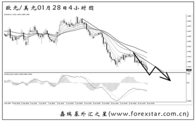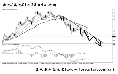 ▲澳元兌美元短線下跌趨勢保持良好。從日線圖上看,高位盤整時間已超過了2個月,匯價有階段性筑頂成功的可能。小時圖出現了持續的