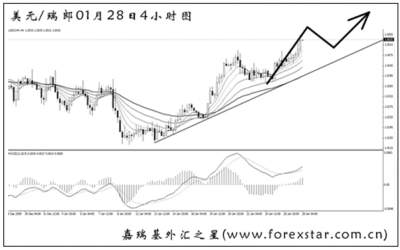 ▲美元兌瑞郎創出了去年12月下旬以來的新高,短線的上漲斜率加大,匯價逐步遠離上升趨勢線。日線圖上看,均線系統已轉為向上排列,從此前第一波反彈的幅度測算,美瑞至少還有200多點的上漲空間。短線需警惕匯價向趨勢線一帶回調的風險。