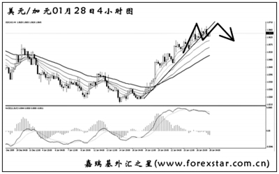 ▲美元兌加元小幅跌破了上升趨勢線,小時圖一連串的MACD頂背離信號發揮了一定的效果。圖中均線系統仍然完好的向上排列,強支撐在1.0530一線。預計美加直接上行突破1.0750的概率不大,短線面臨一波下行回調,繼續做多美加需謹慎。 |