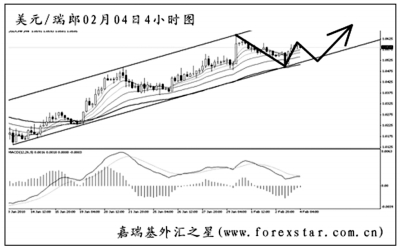 ▲美元兌瑞郎沿4小時圖中的上升通道完好上行,均線系統依托排列。上方的下一道強阻距離現價有400余點,做多的空間尚廣。短線匯價有繼續向趨勢線回調的風險,若不被跌破,后市仍將延續漲勢再出新高。關注1.0530至1.0540一線的支撐作用。