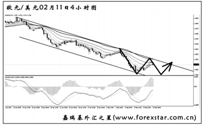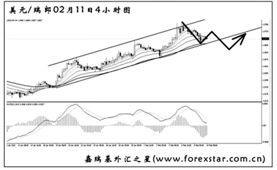 ▲美元兌瑞郎即將考驗通道下沿和均線系統的雙重支撐。從日線圖上看,仍有一定的上漲空間,但短線多頭動能減弱,匯價有進一步下調的風險。預計跌破通道的希望較大,但下跌幅度將一般。在匯價回抽通道下沿時有一定的做空機會。