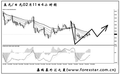 ▲澳元兌美元下跌至日線圖震蕩區間的下沿,從力度交替的角度考慮,是一個中線買入澳元的機會點。0.8570是止損的極限,匯價無論如何不能跌破此位,否則下跌空間將被打開,澳元還將有更深程度的下挫。短線可謹慎看漲澳元,但操作時的倉位要輕。