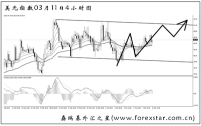 伴隨著眾多風險的逐步解除,匯市跌宕起伏,經歷震蕩走勢。美國2月份非農就業人數減少3.6萬人,但遠低于經濟學家此前預計的減少5萬人。另外,去年12月份的就業數據也被向上修正了4.1萬人。2月份失業率持平于9.7%,經濟學家的預期為升至9.8%。此前,投資者擔心暴風雪的襲擊會導致2月數據表現異常疲軟。發布數據的美國勞工部表示,惡劣的天氣可能對非農就業人數以及工作時間造成影響,但難以明確影響程度幾何。樂觀的就業數據公布后,投資者買入高風險資產的熱情被點燃,高風險貨幣大幅走高,低息貨幣則遭挫。 此外,澳聯儲、加拿大央行、歐洲央行和英國央行先后公布了新一期的利率決議,對匯市也造成了一定影響。澳聯儲宣布升息25個基點至4.0%,結果一如市場預期。這是該聯儲5個月內第四次上調基準利率,從而再度引領全球央行的加息潮。加拿大央行則宣布維持基準利率在0.25%的紀錄低點,并重申了近一年來的承諾,即將當前利率水平維持到6月份,且承認核心通脹率和經濟活動狀況均強于預期。歐洲央行宣布維持基準利率在1.0%不變,英國央行則宣布將利率維持在0.5%的紀錄低點不變,同時維持量化寬松規模不變,結果同市場預期相吻合。有分析師表示,英國央行正在評估英國經濟復蘇程度,在經濟出現更為明確復蘇信號之前不會改變當前貨幣政策。 美元指數繼續維持在高位盤整區間內運行,上沿的阻力在81.20一線下方。從日線圖上看,美元指數目前正進行4浪調整的概率較大,后市還有再度創新高的欲望。短線美元處于區間中部,預計會首先向上沖擊區間上沿,能否升破81.35的強阻成為美元中線打開上漲空間的關鍵。