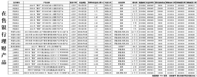 在售銀行理財產品[2010-03-19]