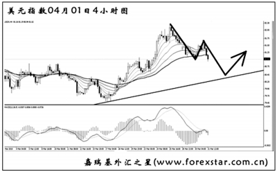 外匯市場最近一周波瀾不斷,好戲連連?傮w來看,市場風險情緒的轉變依舊主導匯市的走勢。 歐盟和國際貨幣基金組織就救助希臘一事達成協議,使得近期鬧得市場不得安寧的希臘問題出現重大轉機,這在很大程度上打壓了市場避險情緒。上周為期兩天的歐盟領導人峰會能否出臺希臘救助方案一直是外界關注的焦點。由于內部分歧嚴重,直到歐盟峰會開幕之際,德國和法國這兩個歐元區大國才就如何救助希臘達成協議。歐盟領導人最終達成協議,稱如果希臘要求的話,歐元區和國際貨幣基金組織將共同向希臘提供財政援助,歐元區15個成員國將通過雙邊貸款的形式向希臘提供援助,并承擔其中的大多數。希臘政府指出,該方案完全滿足了希臘的要求,因此希臘接受。希臘政府認為,這套方案發出了一個穩定的信號,將對希臘經濟產生積極影響。希臘問題近期一直令歐元承壓,上述協議的達成在很大程度上緩解了市場擔憂情緒。 美聯儲在上次政策會議上繼續承諾“在較長時間內維持低利率”,但聯儲內部對是否維持這一承諾的分歧日益擴大,在投資者預期美國經濟將持續復蘇的背景下,關于美聯儲何時開始放棄該承諾并且升息的猜測也甚囂塵上。美國經濟真的強勢復蘇?美聯儲“被迫”放棄低利率承諾?美國經濟數據尤其是3月份非農就業數據有望給市場猜測提供注腳。美國3月非農數據將于北京時間本周五20:30公布。目前接受媒體調查的經濟學家的預期中值顯示,美國3月非農就業人口將增加16.8萬人,失業率預計持平于2月的9.7%。有分析師表示,因歐元區經濟增長或滯后于美國,若美國3月非農就業出現增長,這可能會進一步提升市場有關美聯儲在歐洲央行之前升息的預期,從而助推美元擴大漲勢。 美元指數在創出新高之后小幅回調,目前向此前被升破的區間上沿發起挑戰。從日線圖上看,美元指數在進行第5浪上漲,上升趨勢線的依托作用良好,預計后市有向圖中趨勢線挺進的欲望,但跌破的概率不大,未來一周將是一個探底回升的節奏。