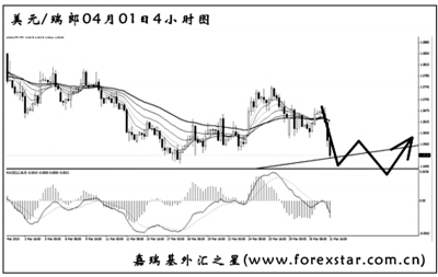 ▲美元兌瑞郎短線重新暴發出了下跌動能,瑞郎繼續表現著它的強勢,F匯價正在挑戰上升趨勢線的支撐,若跌破,美元兌瑞郎將打開進一步的下行空間。結合大方向判斷,向上做多的風險似乎會更小些,短線暫時觀望,等待新的上漲動能暴發后再做抉擇。