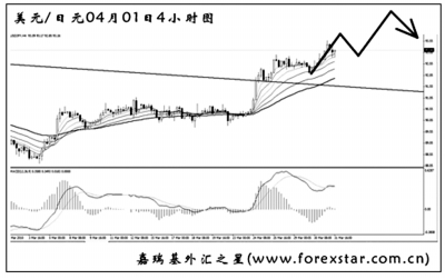 ▲英鎊兌美元未能順利跌破3月初的低點支撐1.4780,短線反彈上行。日線圖上,均線系統仍起到完好的壓制效果,跌勢延續。上方最近一道阻力在1.5380。從主次節奏上預判,英鎊直接有效突破此位置的希望不大,后市將是一個沖高回落的走勢。