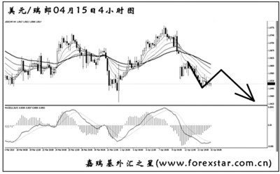 ▲美元兌瑞郎再次將日線圖上升趨勢線跌破,短線的下跌力度較強。從最近一個月的走勢來看,匯價持續處于強動能交替的節奏中,對于操作有一定的難度。目前美元兌瑞郎的主趨勢傾向于下看,若跌破前方1.0430的支撐,匯價還將有更進一步的下跌。