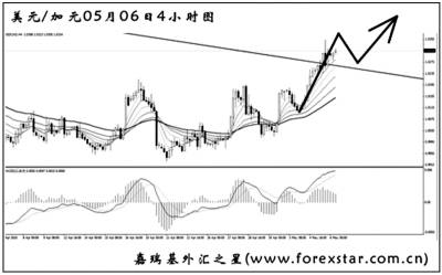 ▲美元兌加元短線重新拾得漲勢,圖中的下降趨勢線為日線圖形成,目前已經小幅升破,MACD持續的底背離信號料將發揮一定的效果。美元兌加元的筑底基本宣告成功,操作應轉為做多的思路。預計匯價將對趨勢線發生回抽,此后延續漲勢。