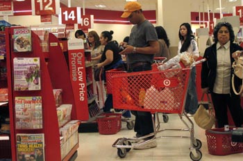 消費者開支是美國今年經濟第一季度增長主要推動力。4月30日,顧客在美國紐約的一家Target連鎖超市內購物。新華社記者 劉欣 攝