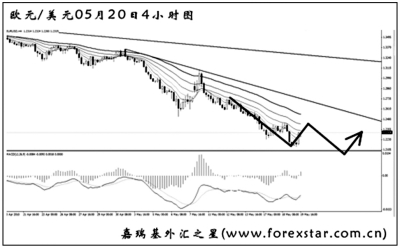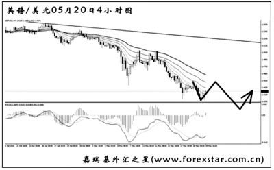 ▲英鎊兌美元下跌力度逐步加強,已經遠離了下降趨勢線。從支撐上看,英鎊的下跌空間尚廣,思路上應繼續做空。短線匯價的下跌動能有所減弱,英鎊有先向上發起回調的風險,但將在圖中均線系統的壓制下轉為下行,再度創出新低。